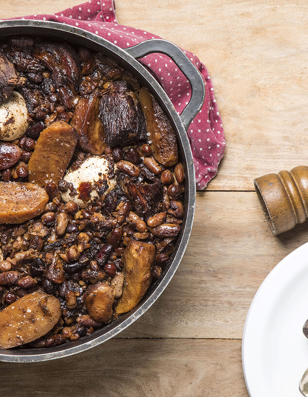 הקטניות הנכונות, בשר שבא בול בבישול ארוך והמון, אבל המון, שום ובצל. למתכון