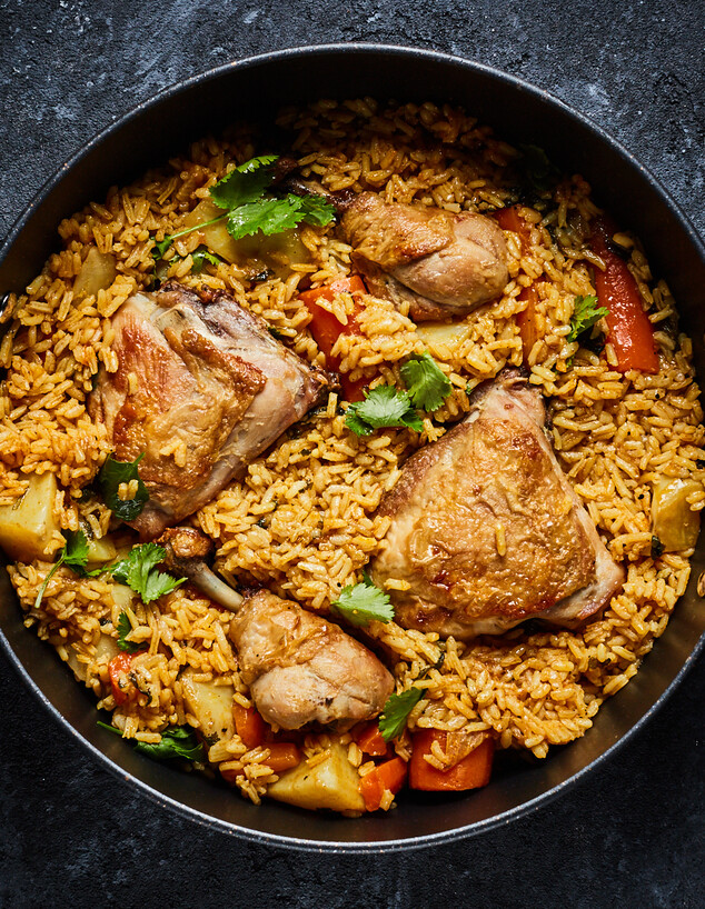 עוף, תפוחי אדמה, אורז וירקות שהתבשלו ביחד בסיר אחד. נכון שלא צריך כלום חוץ מזה?