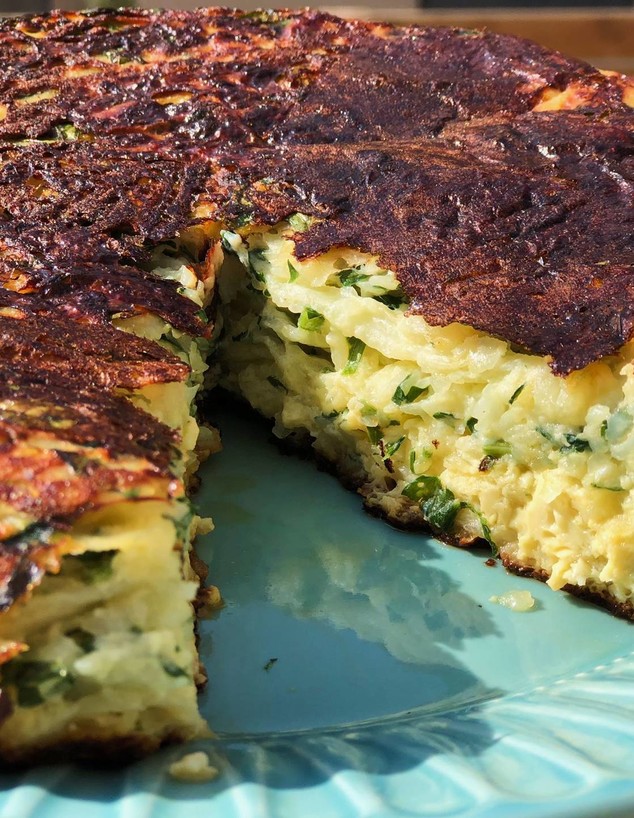 פשטידת תפודים וביצים עם ערימת פטרוזיליה קצוצה. במילים אחרים: פגז. למתכון: מעקודה