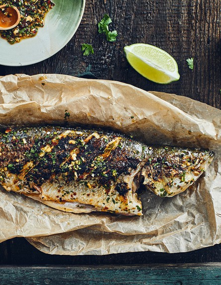 בס שלם בכוסברה ולימון כבוש, פילה ברמונדי בצ'ימיצ'ורי, פורל בסלסה ומושט הכי ישראלי שיש. למתכוני דגים על האש