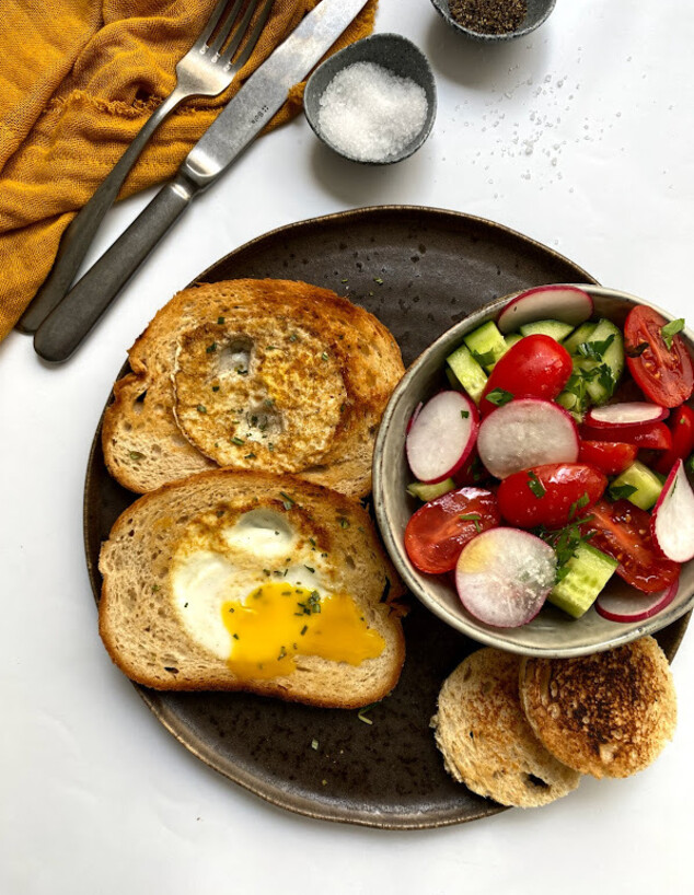 שנים שלא הכנו ביצה בקן, וכבר שכחנו כמה כיף זה. עשר דקות עבודה (15, אם אתם חותכים סלט קטן). למתכון: ביצה בקן משודרגת