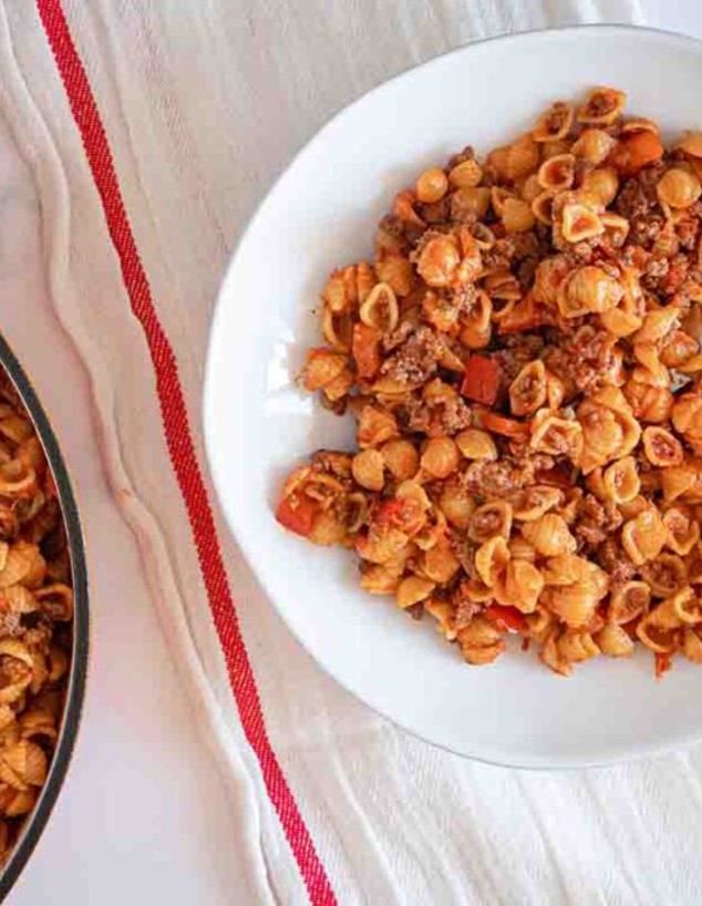 עוד מתכון מעולה של חן מזרחי לפסטה בתבשיל בשר שאינו בולונז שמכינים בסיר אחד ובפחות משעה! למתכון: פסטה גולש בסיר אחד