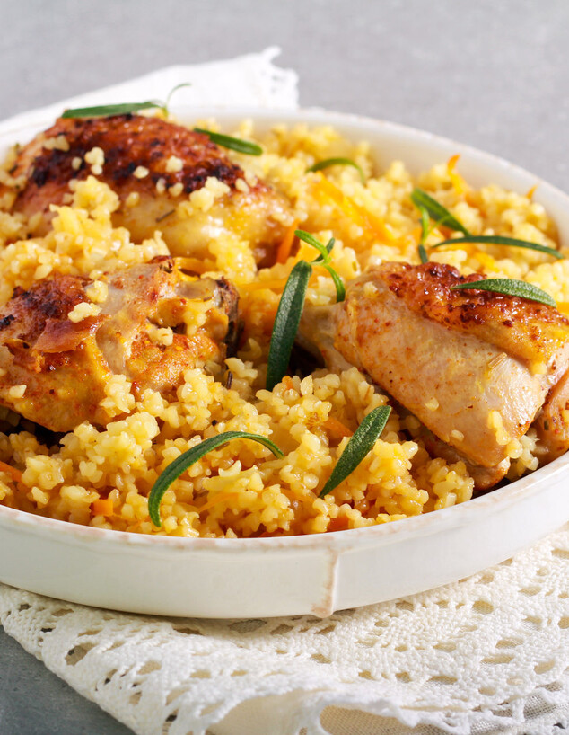 גם עוף, גם בורגול, ועושר טעמים כמו שרק אהרוני יודע. תכינו צלחת לילדים ומיד קופסה לעצמכם לעבודה, אחרת תתחרטו. תבשיל עוף ובורגול של אהרוני