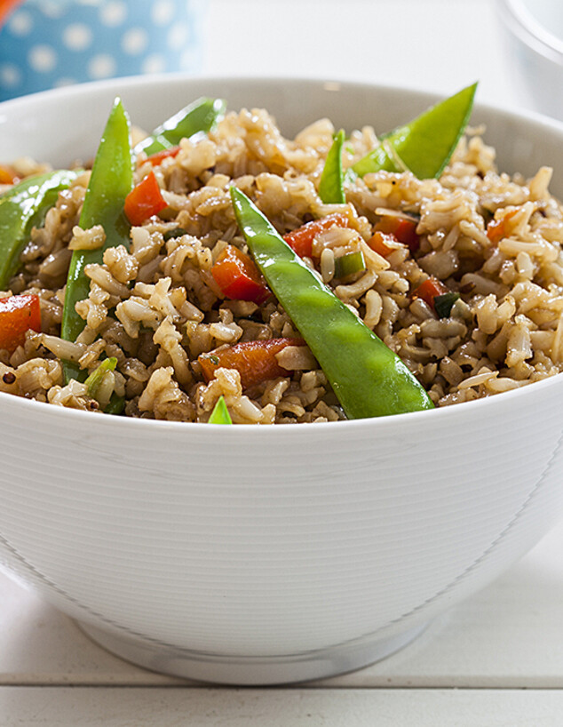 מתחילים עם אופציה בריאה שילדים פשוט עפים עליה. כי אומנם מדובר באורז מלא, אבל בטעם - בטעם יש לנו עסק עם מוקפץ. אין אפונת שלג? אפשר גם אפונה רגילה (מומלץ עדינה). אורז מלא מוקפץ עם פלפלים