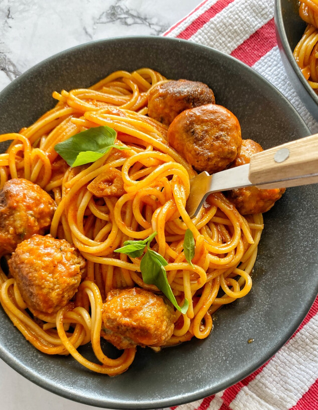 פסטה שנייה מתוך שלוש: אחת המנות שאצלנו מבקשים שוב ושוב. ספגטי עם קציצות בשר רכות ברוטב עגבניות