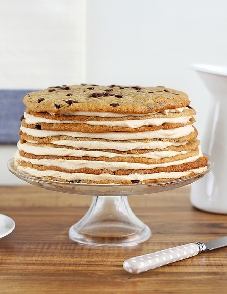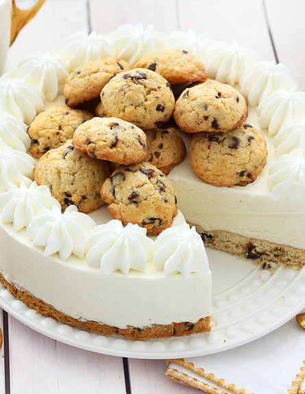 העוגה הזאת היא כבר לא עוגה, היא מונומנט. התחתית היא עוגיית שוקולד צ'יפס אחת ענקית, באמצע גלידת וניל ביתית פשוטה ומלמעלה הר קטן של עוגיות שוקולד צ'יפס קטנות. מתכון: עוגת גלידה שוקולד צ'יפס