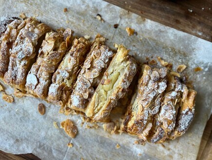 המאפה הזה יכול להיות יופי של קינוח לשולחן החג, אבל הוא גם בהחלט יפאר את כל שאר הימים בשנה: שילוב מושלם של קרם שקדים ותפוחים, בתוך בצק עלים קריספי. הוא לא רק נראה מהמם, הוא גם טעים ברמה של קונדיטוריה