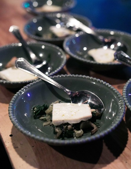 הכניסה לאירוע הייתה דרך שתי שורות של כדי טנזייה על פחמים, כאשר הדבר הראשון שפוגשים כשנכנסים הוא המטבח. קיבלנו כוס יין לבן מבעבע ונישנשנו מקלול פקורינו זיתים שחורים וזרעי כוסברה. טעים!