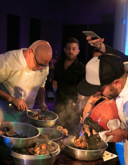 ארז קומרובסקי, השף שאחראי על הארוחה המפנקת, הסתובב בין האורחים ופינק אותנו בכוסיות של אוזו