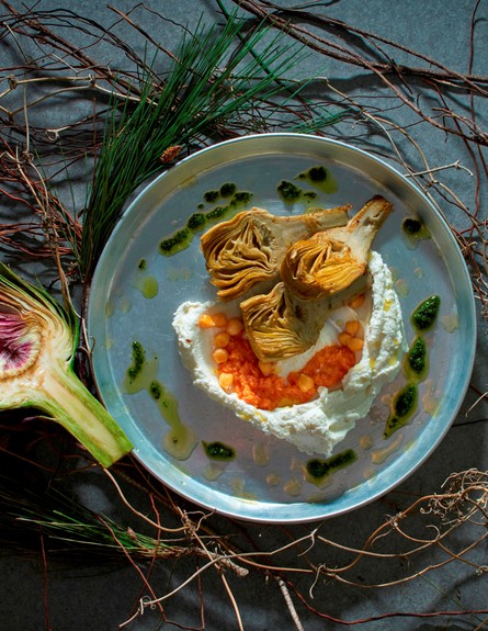 ארטישוק צרוב על מצע לבנה יוגורט בקר | רשת קפה לואיז