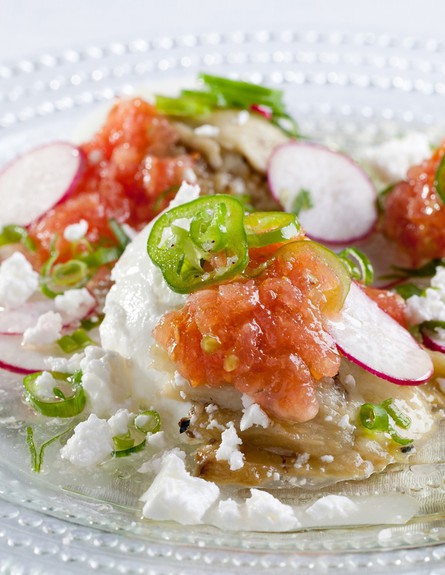 חציל שרוף ביוגורט צאן עם צ'ימיצ'ורי, חמוציות ואורגנו | מושבוצ, מושב רמות