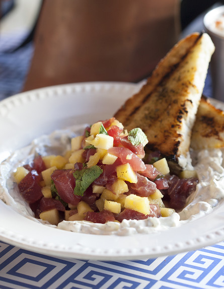 סביצ'ה טונה עם יוגורט, קוביות מנגו, נענע וצ'ילי אדום | ספרטה, תל אביב