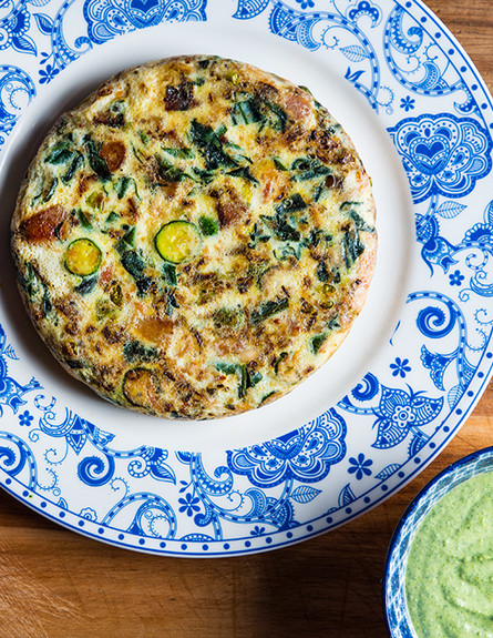 הרבה פריטטות ראינו וטעמנו בחיים, אבל אחת שיש בה גם קוביות תפוחי אדמה, גם ירוקים, גם זוקיני קטנטנים וגם כרוב ניצנים עוד לא מצאנו. למתכון לפריטטה של יותם ארונוביץ'