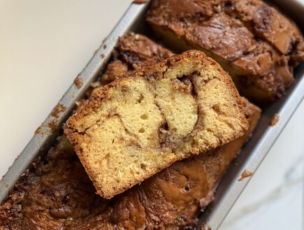 העוגה הזו אולי נראית כמו עוגה בחושה תמימה, אבל היא מחביאה בתוכה סווירל קינמון-חמאה שיפיץ לכם כזה ריח משכר בכל הבית שתתחננו אליה שהיא כבר תצא מהתנור