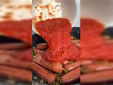 5 מוסיפים למחבת שום, רסק, תבלינים, עגבניות מרוסקות ומים, ומערבבים.