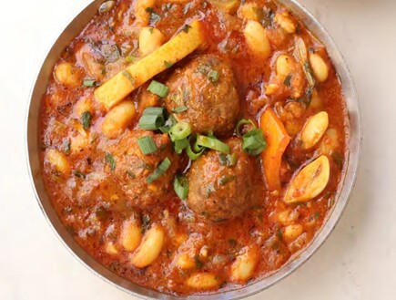 3 מעבירים את הקציצות לסיר השעועית, מכסים ומבשלים 20 דקות על להבה נמוכה. אם חסרים נוזלים, אפשר להוסיף חצי כוס מים חמים.