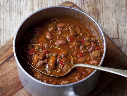 5 מוסיפים את השעועית ומביאים את הצ'ילי לרתיחה. מנמיכים את הלהבה, מכסים את הסיר ומבשלים בחום נמוך בין שעתיים וחצי לשלוש שעות, תוך הוספת מים מדי פעם אם התבשיל מתייבש. הצ'ילי טעים הרבה יותר ביום שלמחרת.