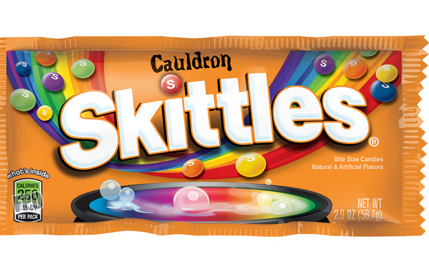 Cauldron Skittles: הסקיטלס האלה קיבלו אריזה חדשה ושמות "מפחידים" כמו אגס מפוחד ולימון אורב, אבל בעצם מדובר בסוכריות סקיטלס רגילות בטעמי לימון, ענבים, קלמנטינה, אגס ופירות יער.
