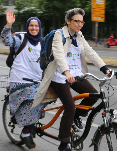 25 זוגות אופניים זוגיים עלו בשבוע שעבר על כבישי בירת גרמניה, כשעל כל אחד מהם רוכבים ביחד איש או אשת דת יהודים ומוסלמים