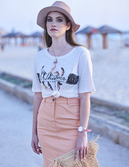חולצה וחצאית: לורד קיטש // תיק: MANGO // שרשרת: THOMAS SABO // שעון: SWATCH // כובע: אוסף פרטי