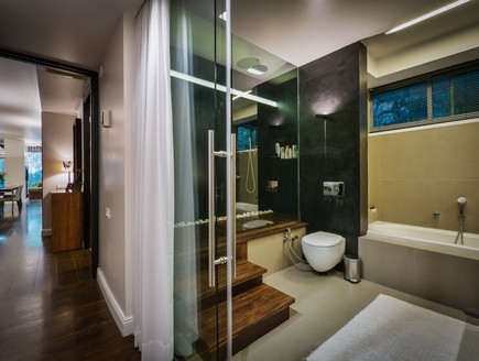 מחיצה בסוויטת הורים בין המעבר וחדר הרחצה בדירה בתל אביב