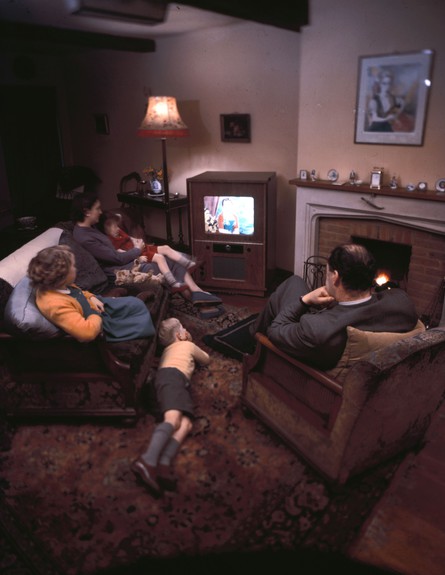 בסוף שנות ה-40 גדלה תפוצתם של מכשירי טלוויזיה בבתים פרטיים, אבל עדיין היה מדובר ברהיט מסורבל עם מסך קטן.
