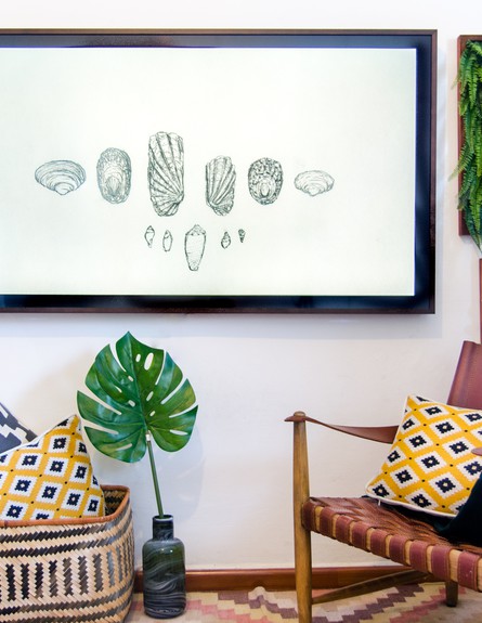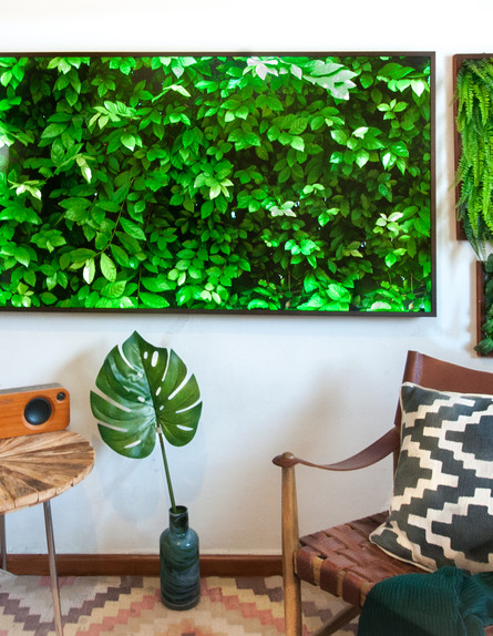 כדי ליצור מראה ירוק שלא דורש כישורי גננות, נעזרנו בטלוויזיה החדשה של סמסונג, The Frame, המיועדת להשתלב בחלל מעוצב.