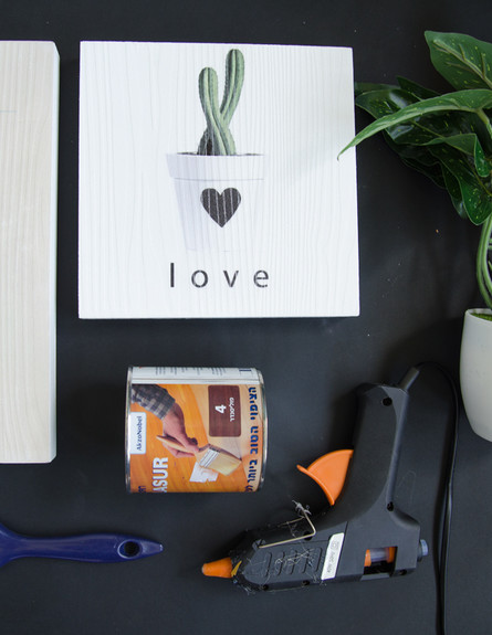 בשביל קיר ירוק צריך תמונות מודפסות על עץ (בחנויות הסטוק), צמחי פלסטיק, צבע לעץ, מברשת, דבק חם ומתלים לתמונות.