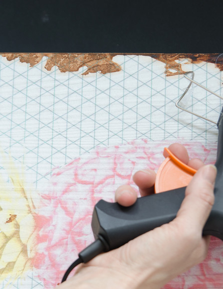 הופכים את התמונות (מאחור הן נראות כמו מסגרת סביב תחתית שקועה), צובעים אותן ומחכים לייבוש.