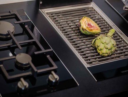 בסופו של דבר רוב העבודה במטבח מתנקזת למשטח הבישול, בכדי לנצל כיאות את כל צרכי הבישול שלנו השתמשנו במשטחי בישול הדומינו של סימנס המשלבים כיריים גז, אינדוקציה וגריל. משטח הגריל מגיע עם מכסה מזכוכית קראמית והוא הופך משטח עבודה כאשר אינו בשימוש.