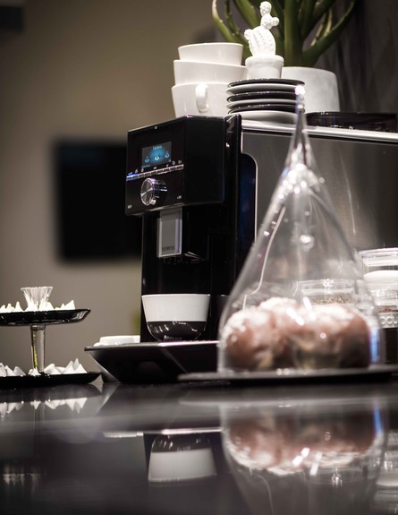 מכונת הקפה היא המקום המנחם ביותר במטבח, בעיקר אם כבר מהמיטה (או מהאוטו) אפשר להפעיל אותה דרך הסמארטפון ולצפות לאיכות הקפה. הפינוק יהיה מושלם עם קלוש מעוצב ומאפים טעימים וטריים מסביב לעמדת הקפה.