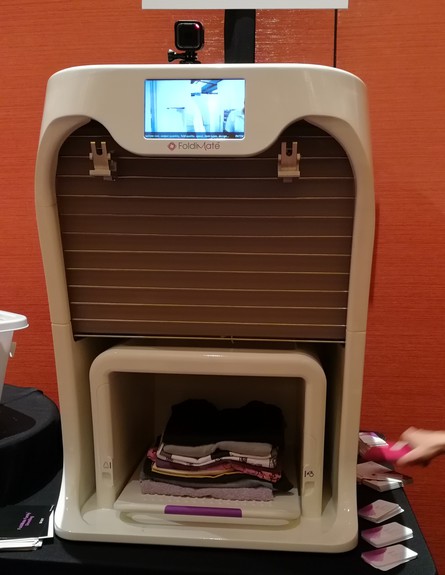הרובוט FolidMate מקפל בשבילכם כביסה . צריך לתלות את הבגדים על מתלה מיוחד ומשם הם עוברים למגש הקיפול