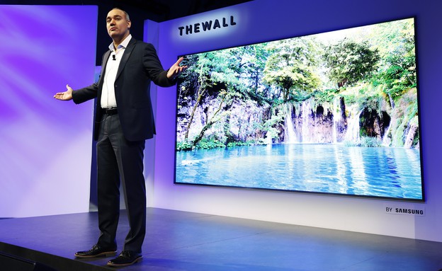 קבלו את The Wall ("הקיר") - טלוויזיה ענקית של סמסונג בגודל 146 אינצ', עם טכנולוגיית תאורה עוצמתית וחסכונית ומסגרת דקיקה, כדי שאפשר יהיה לחבר כמה טלוויזיות כאלו יחד למסך עוד יותר ענק.