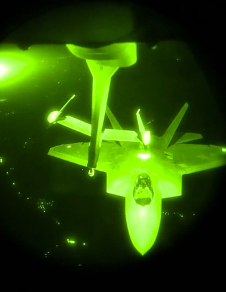 אחת התמונות המרהיבות שצולמו אי פעם במהלך תדלוק אווירי: לפחות שישה מטוסי קרב חמקנים מסוג F-22 ראפטור שנשלחו מחופי הוואי כדי להפציץ בסוריה ועיראק