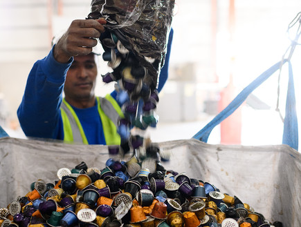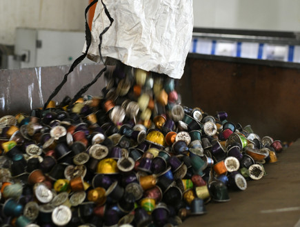 הפלא מתחיל כאן, כשקפסולות הקפה המשומשות מופרדות משקית המיחזור הביתית.