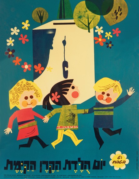 או כרזות החוגגות את יום הולדתה של הקרן הקימת, דוגמת זו מ-1971.