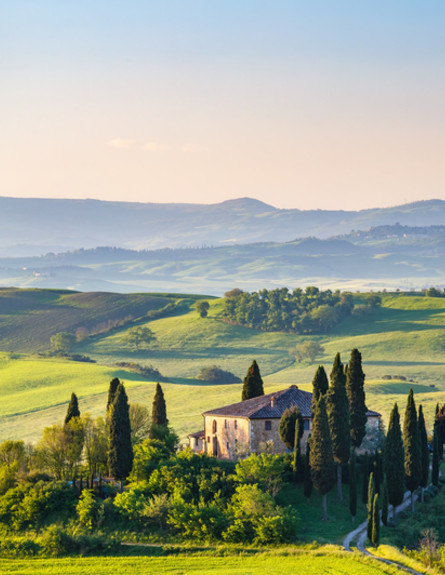 נסיעה בכבישים והנוף הציורי של טוסקנה איטליה.