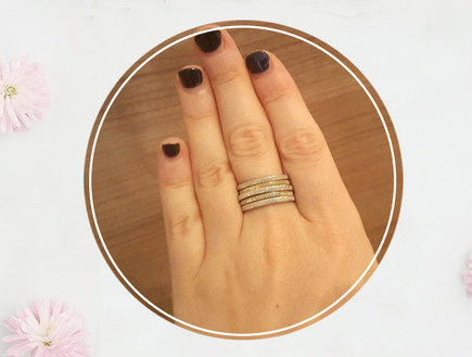 שלי שומרי: הטבעת שלי עשויה זהב לבן עם אבן ספיר. בן הזוג שלי בחר אותה לגמרי בעצמו, אני רק אמרתי לו שאני רוצה אבן מיוחדת ולא יהלום. משהו צבעוני. עיצוב: נטע וולפה.